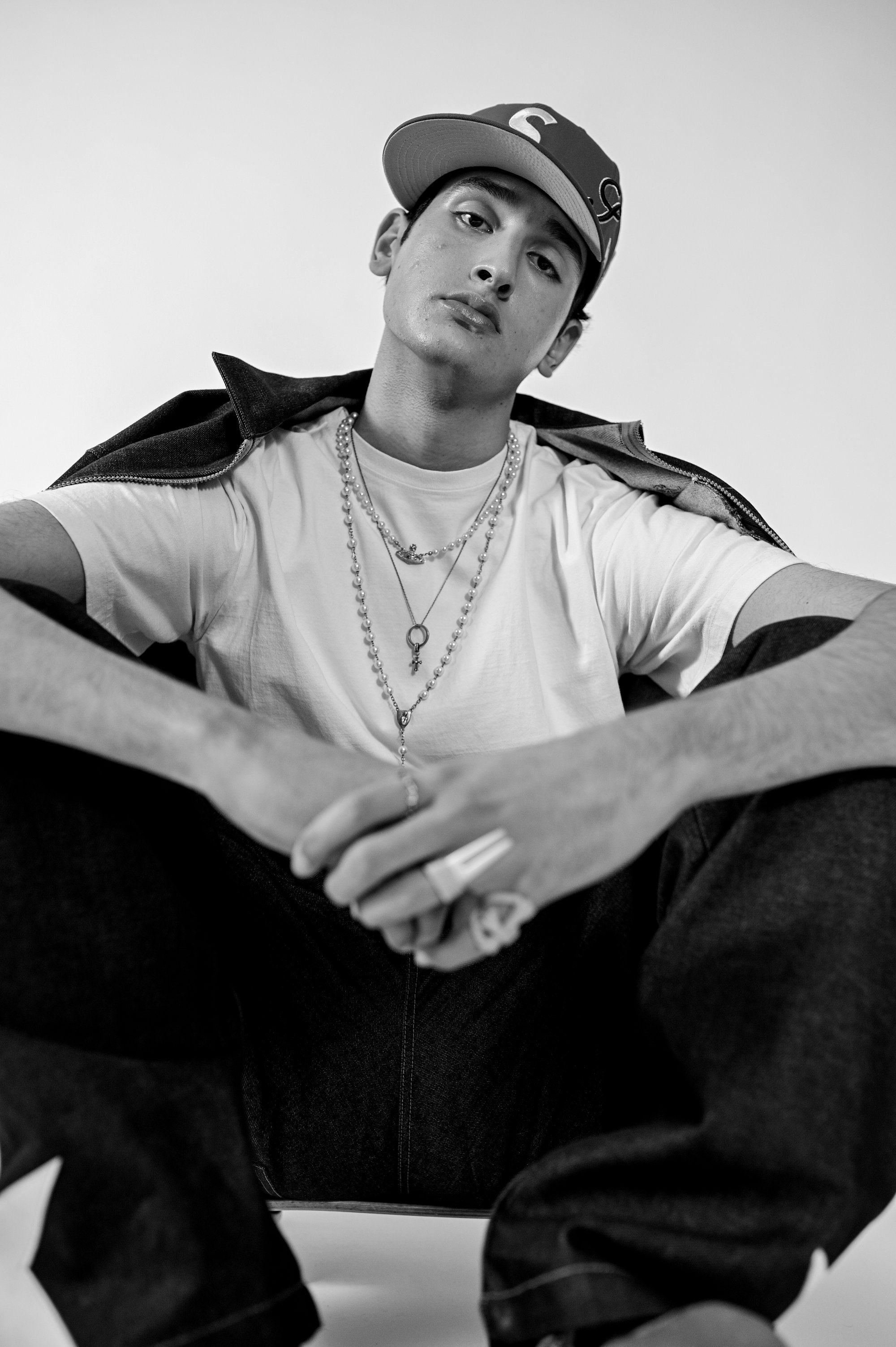 -Embroidered logo tone on tone